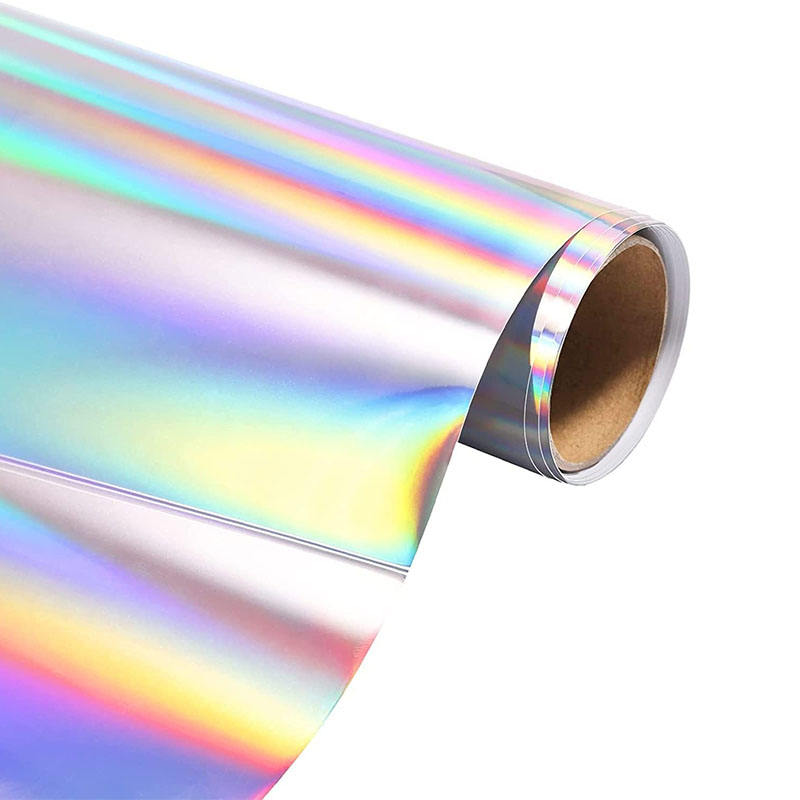 Tela láser metálica sintética elástica en relieve de cuero de vinilo PVC holográfico iridiscente transparente para sofá de muebles