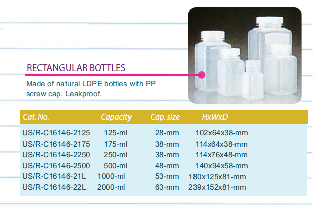 Botella de boca ancha Rectangular, transparente, LDPE, 500ml