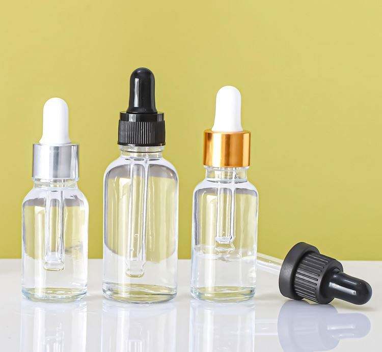 Transparente mate blanco mate negro ámbar 5ML 10ml 15ml 20ml 1oz 2oz 3oz botella cuentagotas de aceite esencial de vidrio