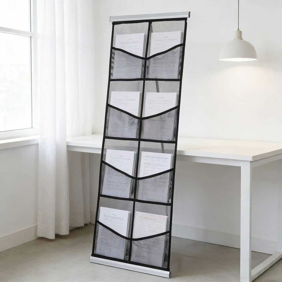 Organizador de Folletos Transparente con Malla, Soporte de Suelo con 8 Bolsillos para Agencias Inmobiliarias, Concesionarios de Automóviles, Catálogos de Productos