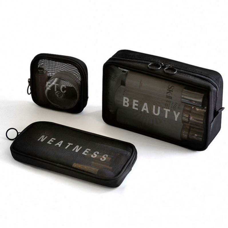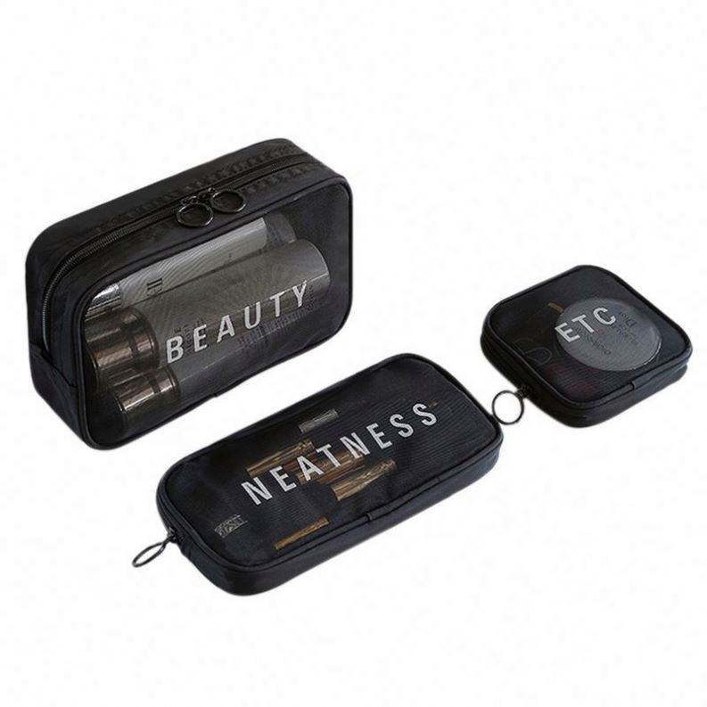 Bolsa de Almacenamiento de Cosméticos de Malla de Nailon Transparente, con Logotipo Personalizado, Juego de 3 Bolsas de Maquillaje de Viaje, Pequeñas y Grandes