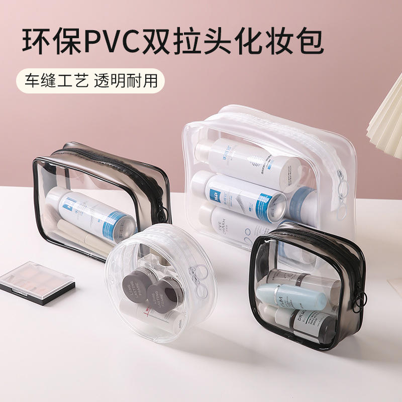 Bolsa de cosméticos transparente de PVC de gran capacidad con cierre de cremallera, estuche de almacenamiento de viaje impermeable para artículos de tocador, uso doméstico, Color sólido