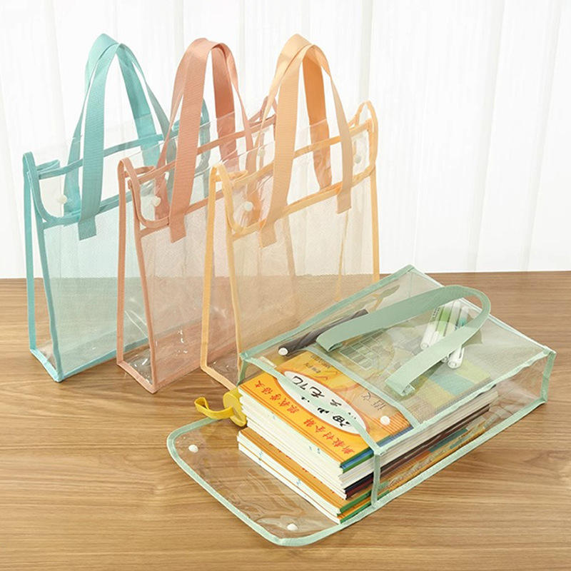 Bolsa transparente para documentos de PVC, forma rectangular con cierre a presión para viajes y almacenamiento, organizador de oficina, soporte para libros