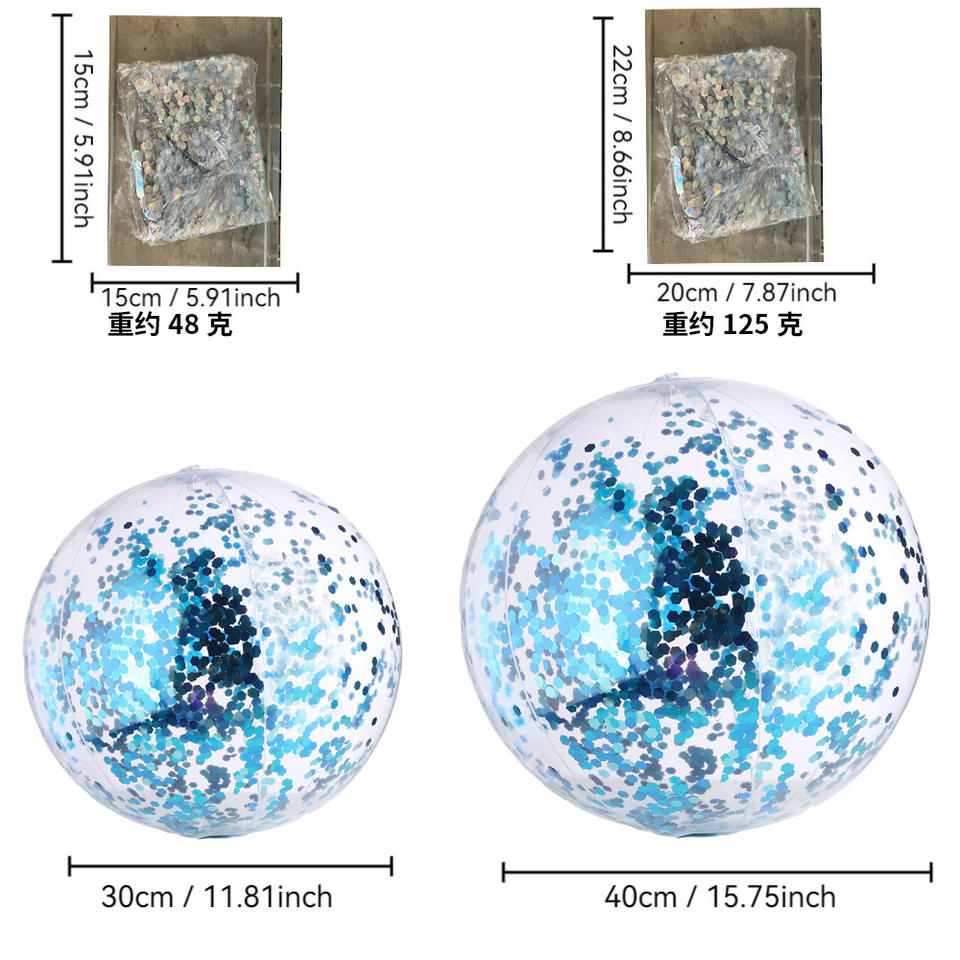 Esfera inflable transparente de PVC con brillantina, juguete de playa para jugar en interiores y exteriores, de 5 a 7 años, unisex