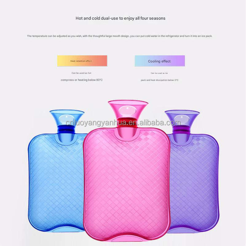 Compresa fría y caliente de PVC transparente Botella de agua caliente Cuello Hombro Alivio del dolor Mano Pies Calentador Bolsa de agua caliente