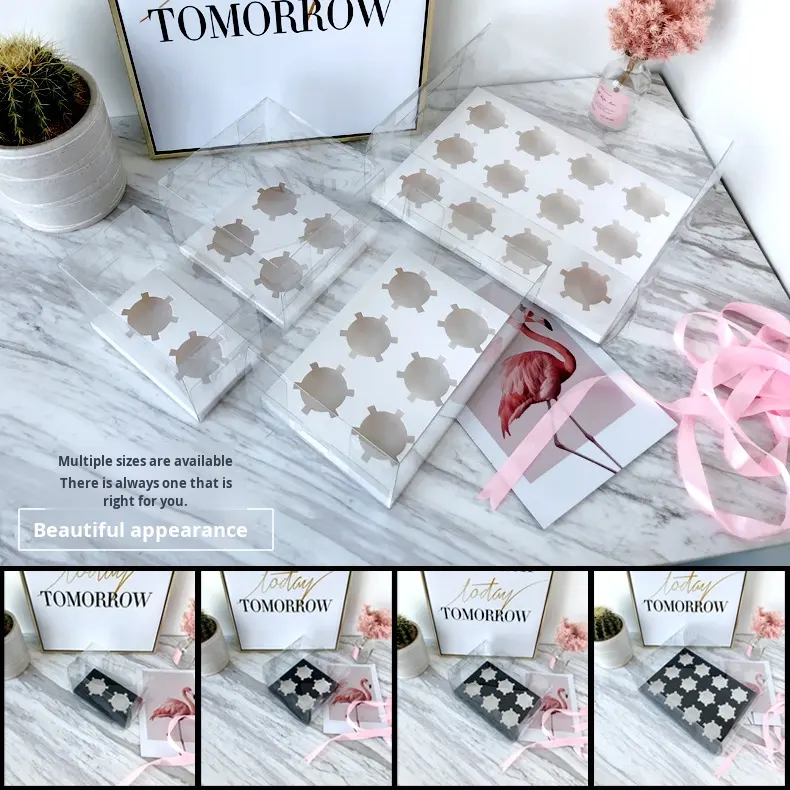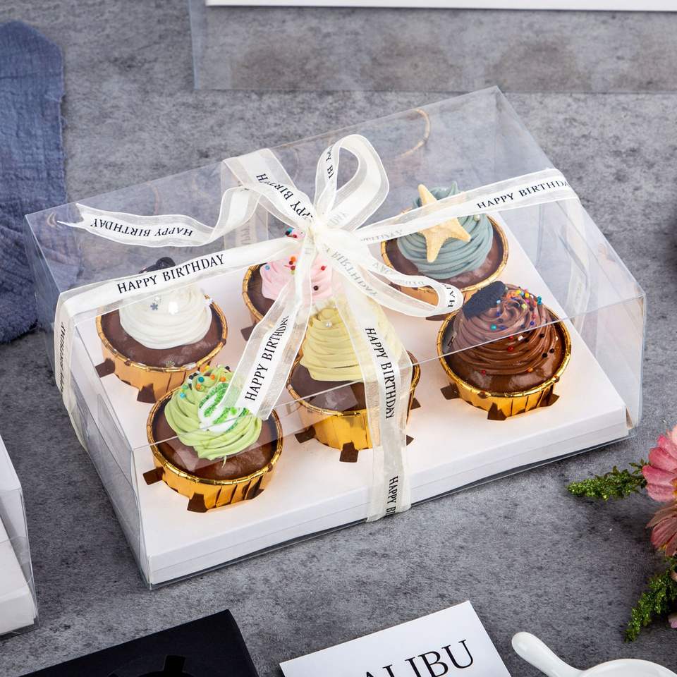 Caja de pastel para hornear vasos de papel transparente 2/4/6/8/10/12 cápsulas para celebración de cumpleaños caja de embalaje de pastel pequeño estampado para alimentos