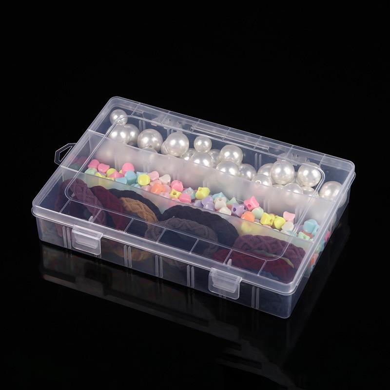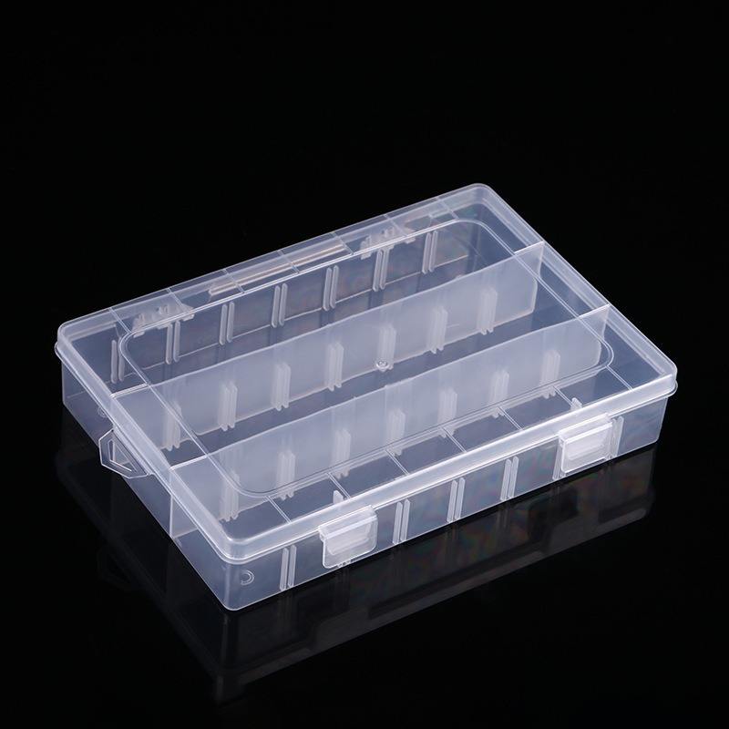 Caja de almacenamiento de plástico transparente con 24 compartimentos y doble cierre para piezas de ferretería y herramientas de dibujo.