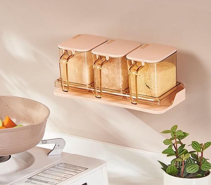 Organizador de Especias Ajustable para Encimera de Cocina, Estante de Plástico Transparente de Tres Piezas para Condimentos