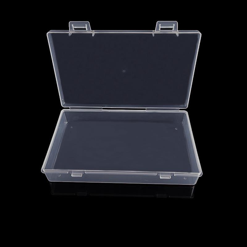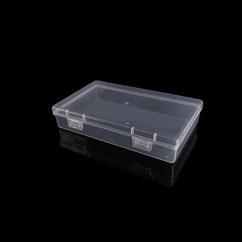 Caja de almacenamiento rectangular transparente de 15,4 cm x 9,2 cm x 3 cm para herramientas, piezas, accesorios, tarjetas, contenedor organizador de escritorio