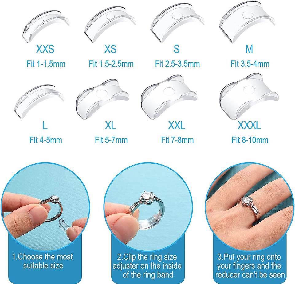 Ajustador de anillo transparente en 8 tamaños, almohadilla protectora de silicona para joyería, anillos sueltos transparentes invisibles, reductor de tamaño de anillo, ajustador de tamaño