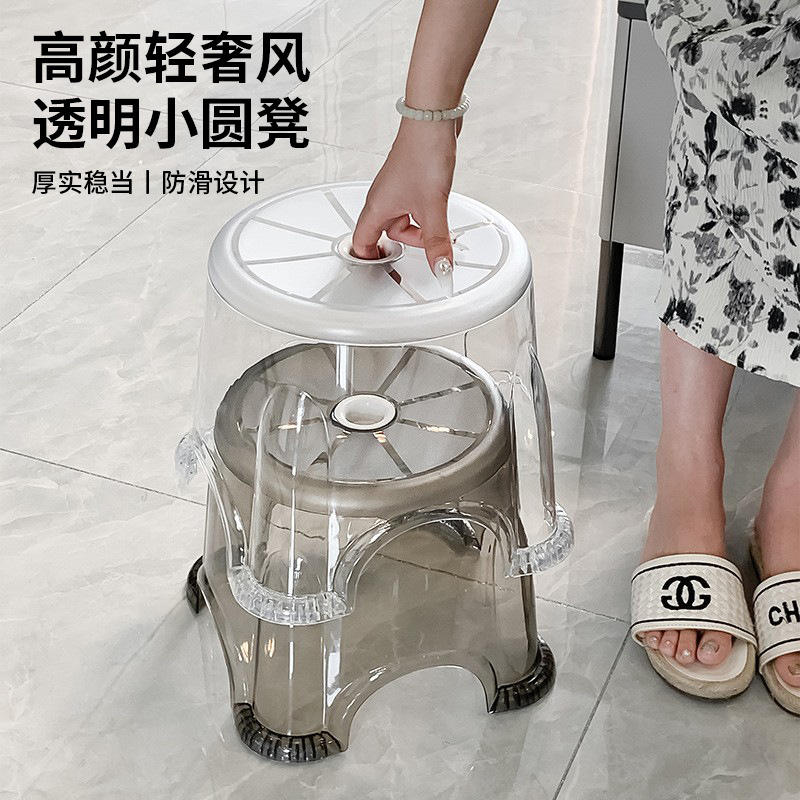 Transparent Round Stool Plastic Thickened Durable Home Living Room Chair Small Seat Kids Shoe Changing Stool
