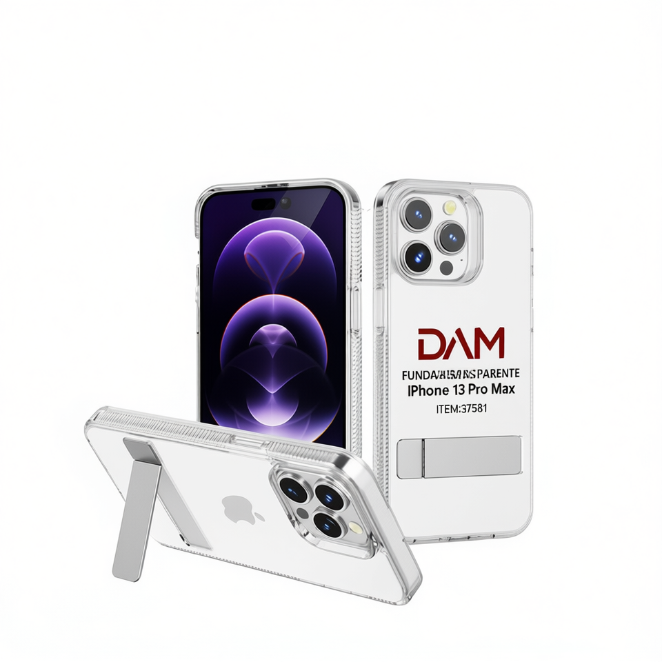 Funda Transparente Antigolpes de TPU+PC con Soporte de Tira para 13 Pro Max