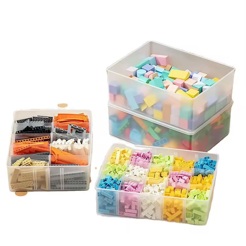 Caja de almacenamiento transparente para juguetes ensamblados para niños, caja de almacenamiento de bloques de construcción de partículas pequeñas de clasificación de ladrillos Lego