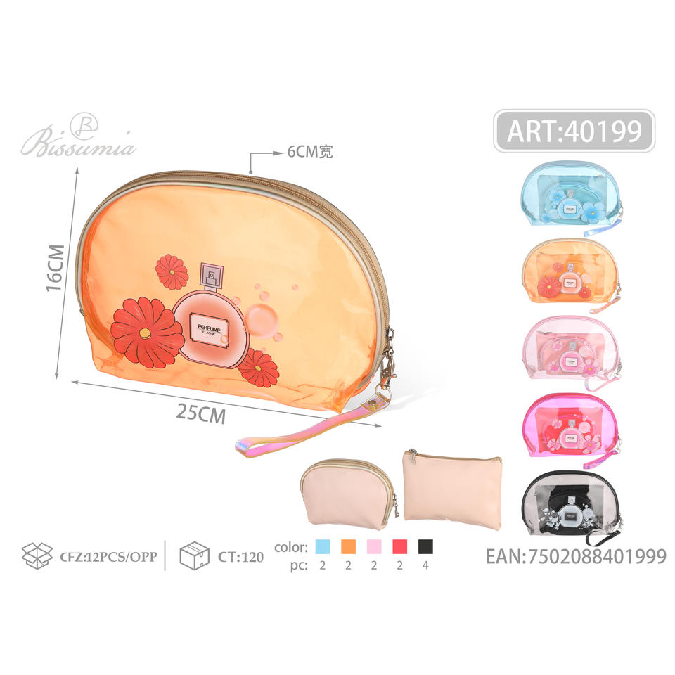 Estuche Cosmético Transparente de Tres Piezas con Gran Capacidad, Logotipo, Bolsa Plana Semicircular Pequeña de 18x12, Bolsa Interior de 25x16x6, Bolsa Interior de 14x10x4