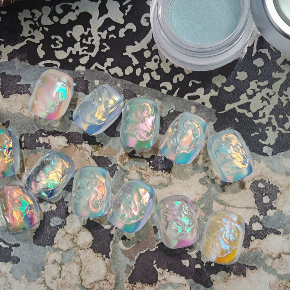 Escamas de Titanio Transparentes Camaleónicas, Pigmento Cosmético Iridiscente con Efecto Óptico Variable de Arcoíris Aurora para Sombras de Ojos y Arte de Uñas