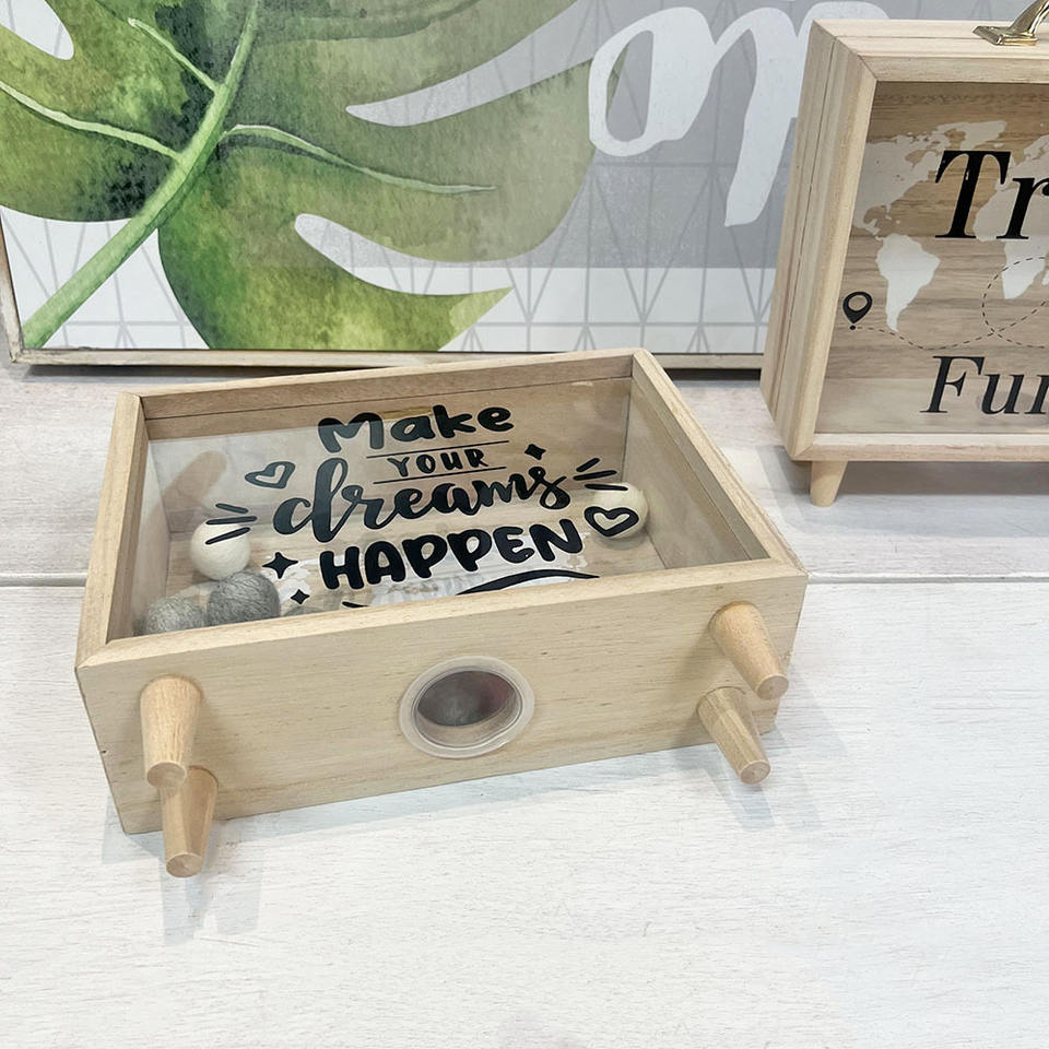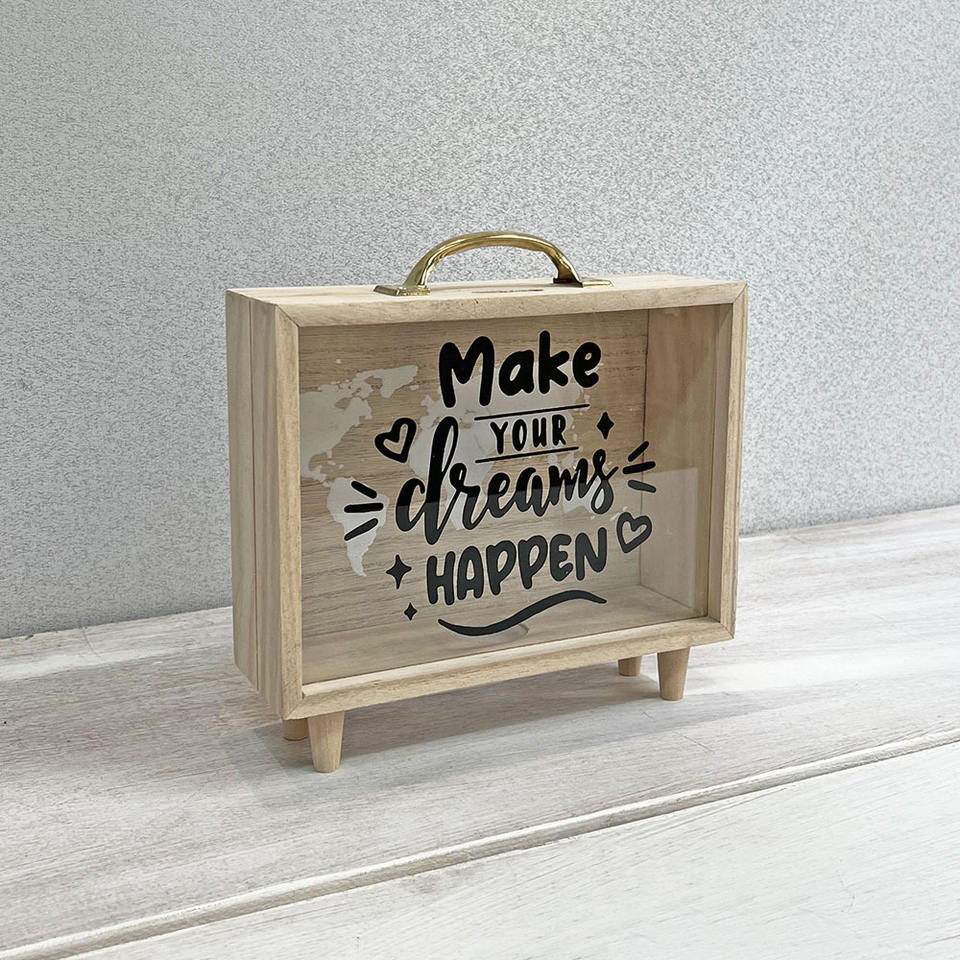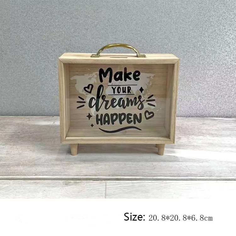 Alcancía de Madera Transparente para Viajes, Hecha a Mano y Personalizada, Caja de Ahorro de Dinero en Efectivo, Maleta de Ahorro de Dinero