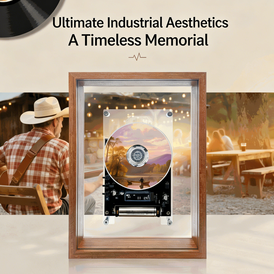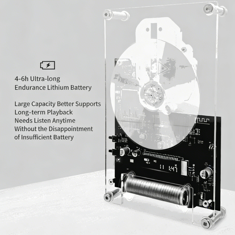 Reproductor de CD con Marco de Madera Transparente, Bluetooth, Batería Integrada, Pantalla Digital, Decoración Artística de Escritorio, Reproductor de Música para Hogar y Oficina