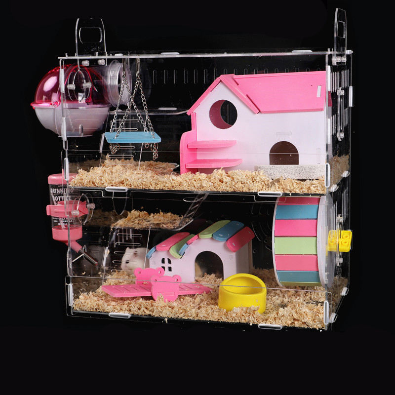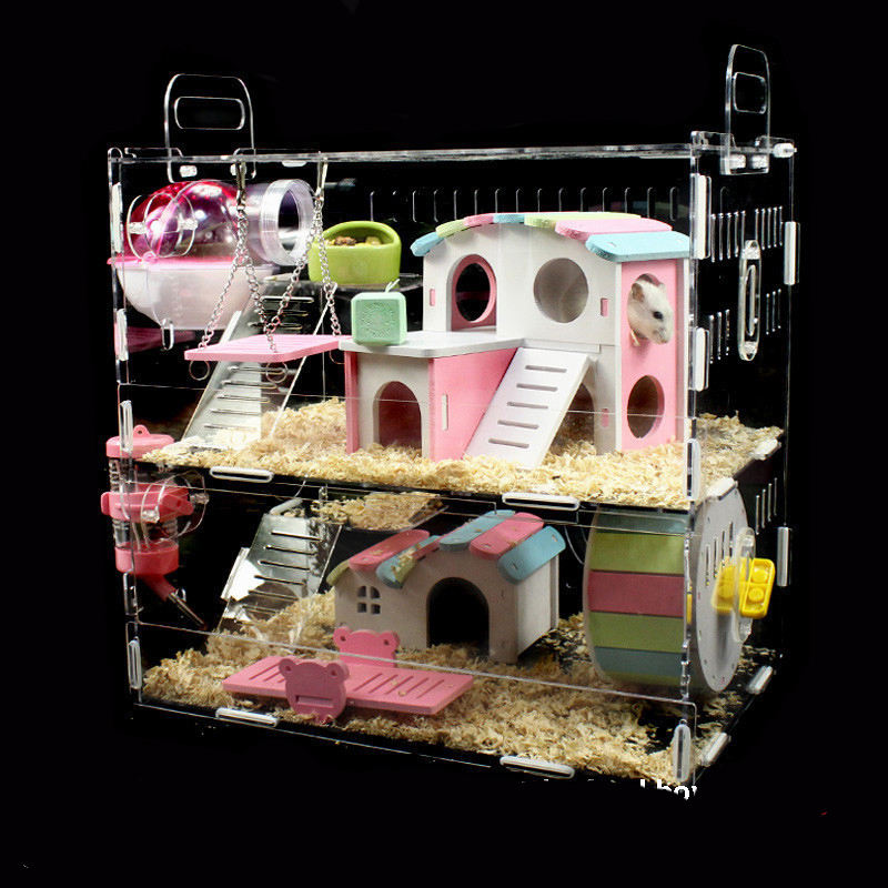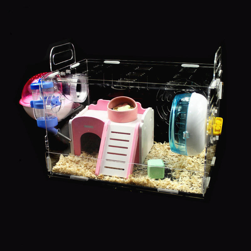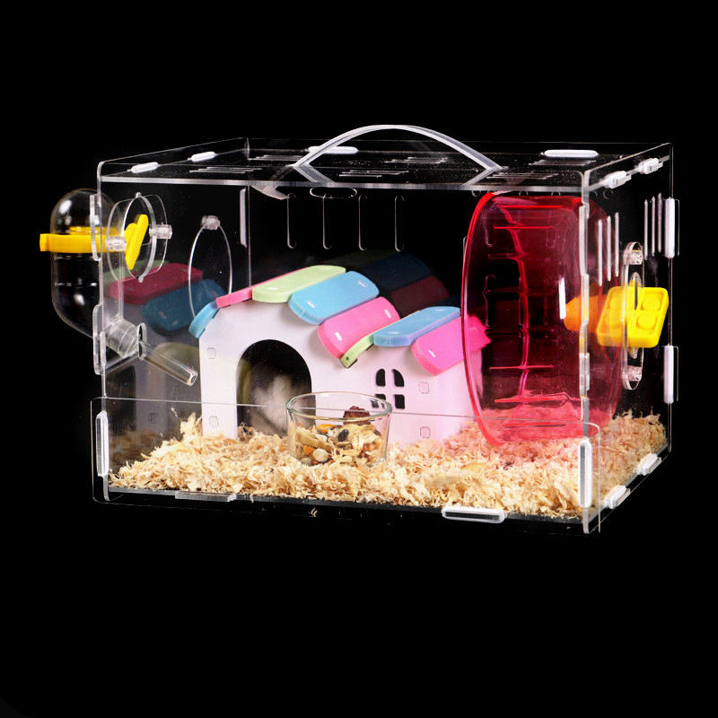 Jaula transparente para hámster, jaula grande para hámster con rueda de juguete