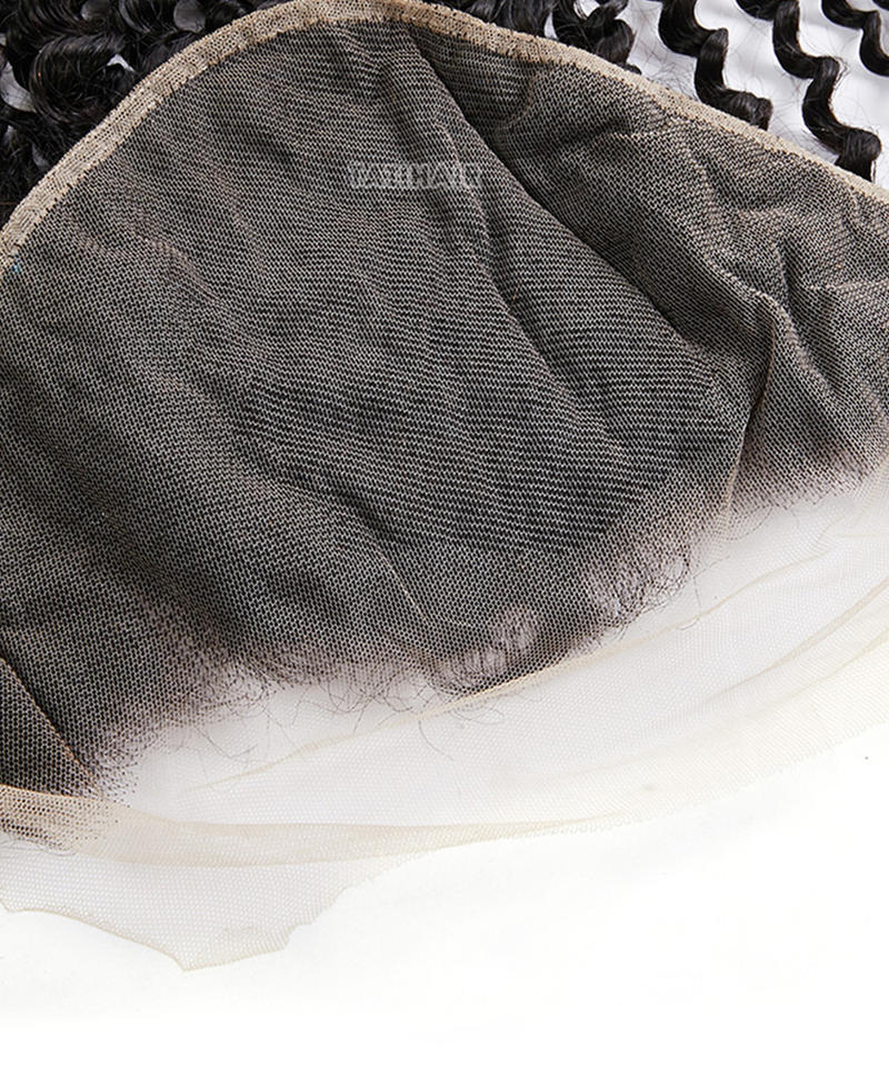 Transparente para paquete de extensión de cabello Remy brasileño prearrancado 13*6 máquina de cierre de oreja a oreja rizada Doble
