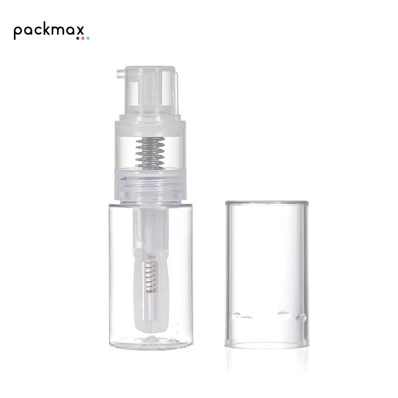 Envase transparente de plástico de 35ml 50ml 60ml, botella vacía para talco de bebé, brillo corporal, spray con bomba, botella para polvo en spray