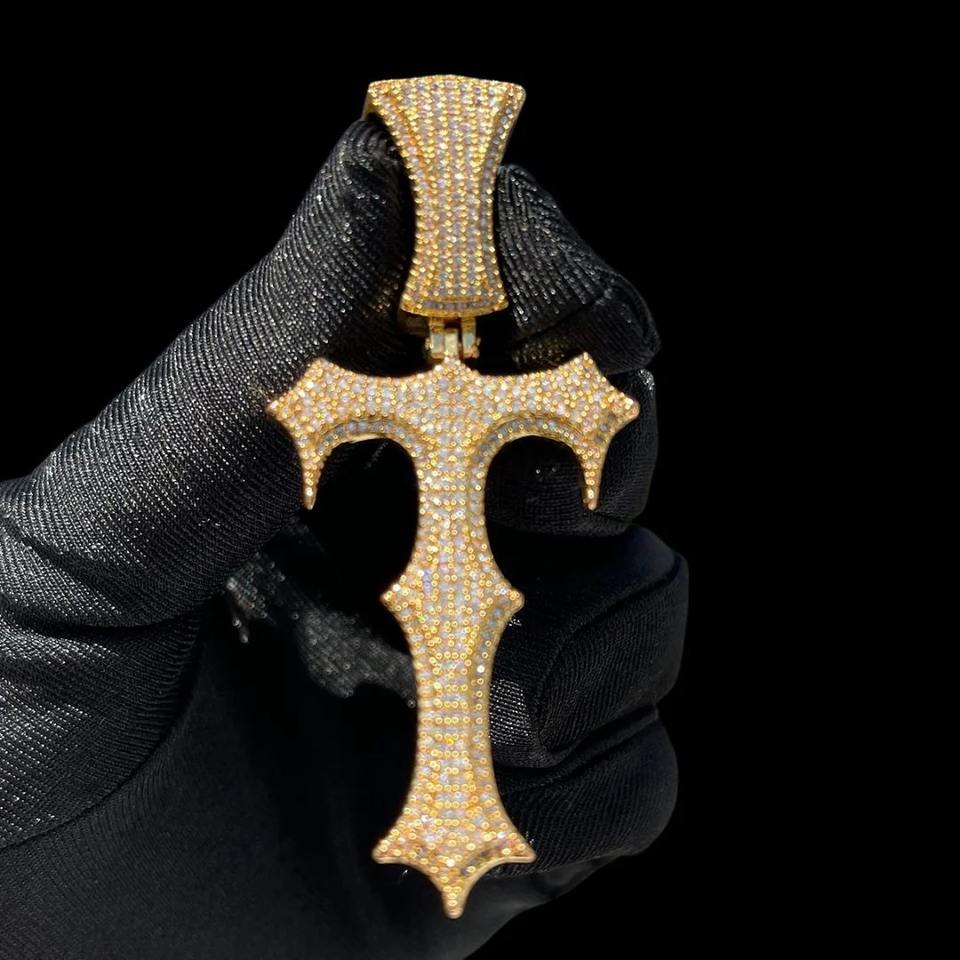 Collar con Colgante de Diamantes Chapado en Rodio Estilo Trap Rapper Edición Vampiro para Fiesta