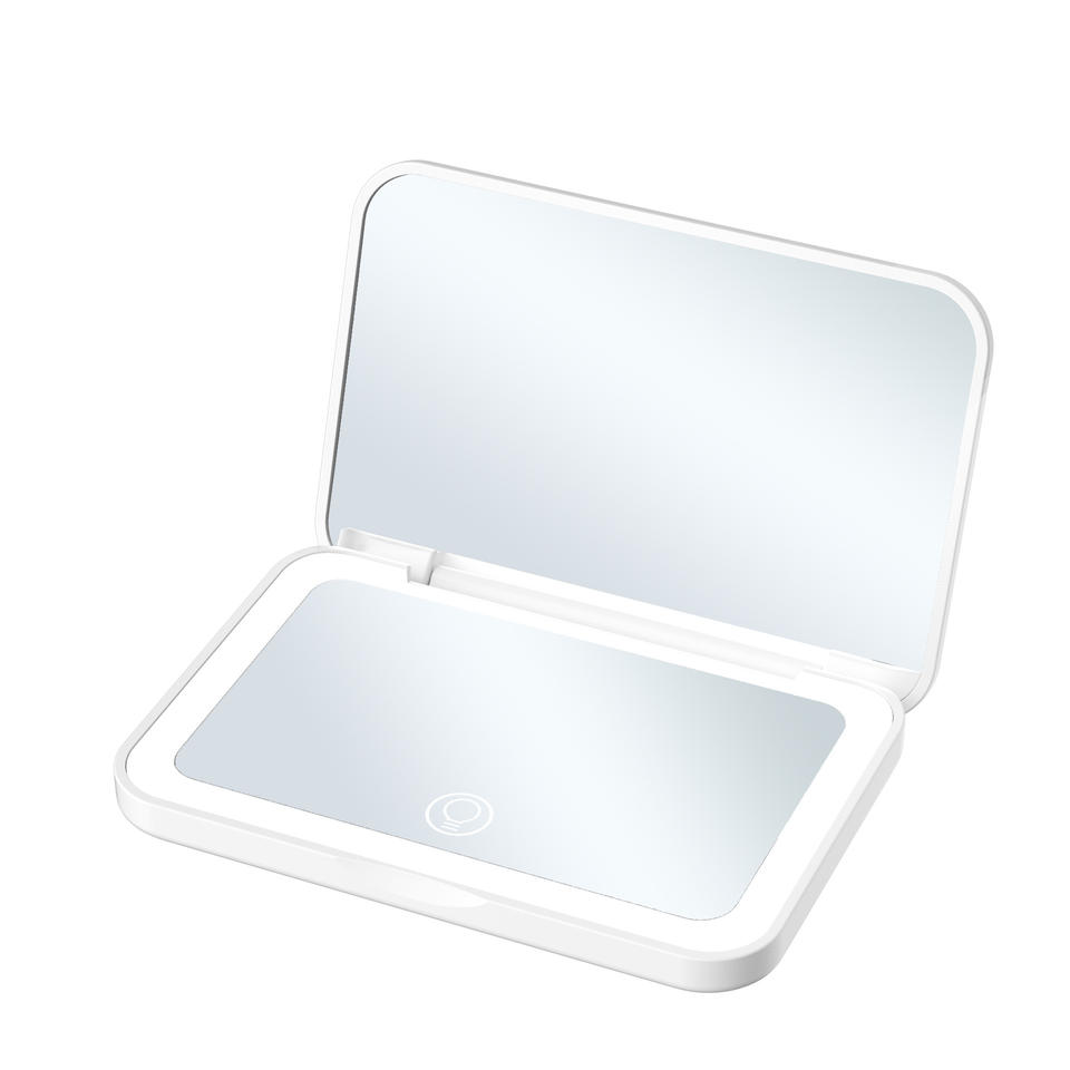 Espejo de Bolsillo LED Cuadrado de Doble Cara para Viaje, Mini Espejo de Maquillaje Compacto con Luz LED Regulable