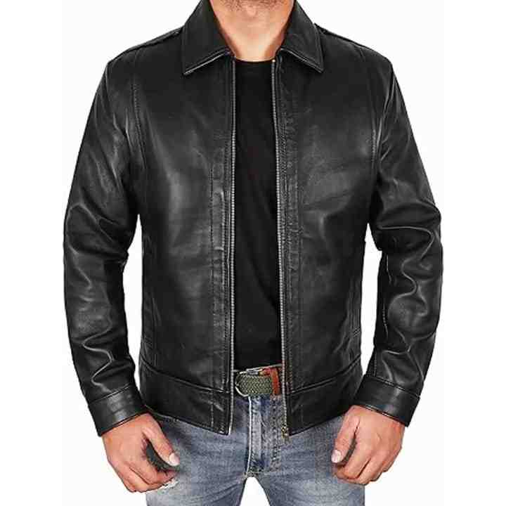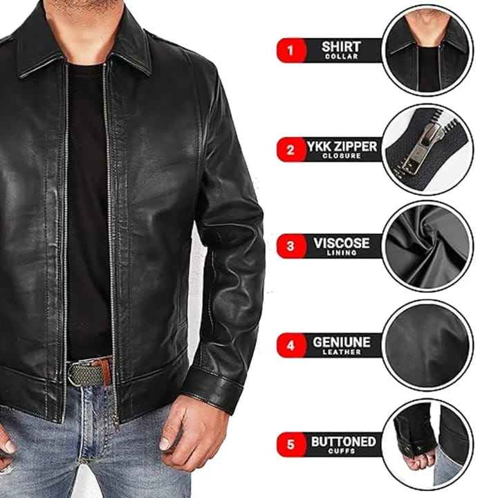 Chaqueta de cuero para hombre con cremallera personalizada, estilo vintage, para uso diario.