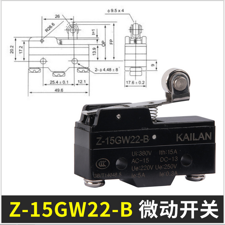 Interruptor de fin de carrera micro de viaje Z-15GW22TM-1704 LXW5-11G2, interruptor momentáneo SPDT de acción rápida con rodillo de bisagra largo