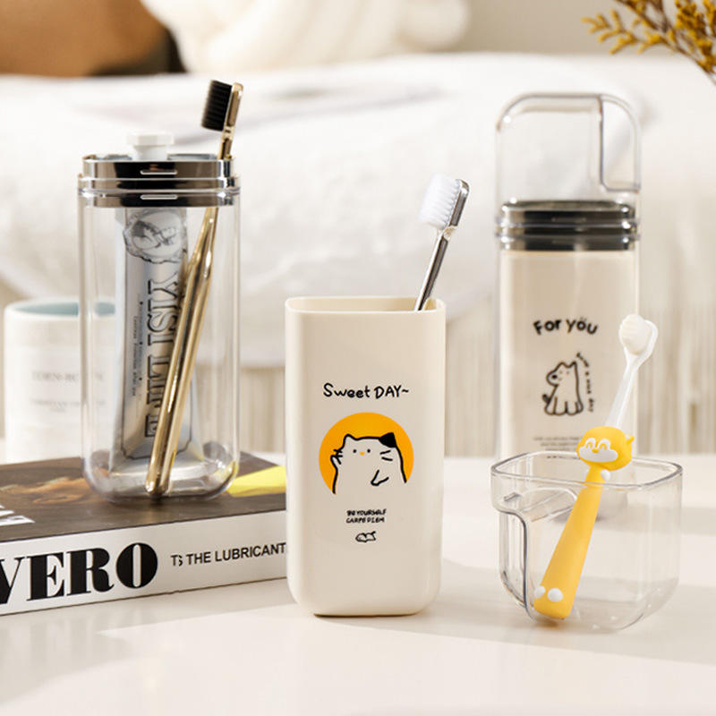 Taza de enjuague bucal de viaje de plástico portátil con caja de almacenamiento de cepillo de dientes para tazas de lavado de viajes de negocios