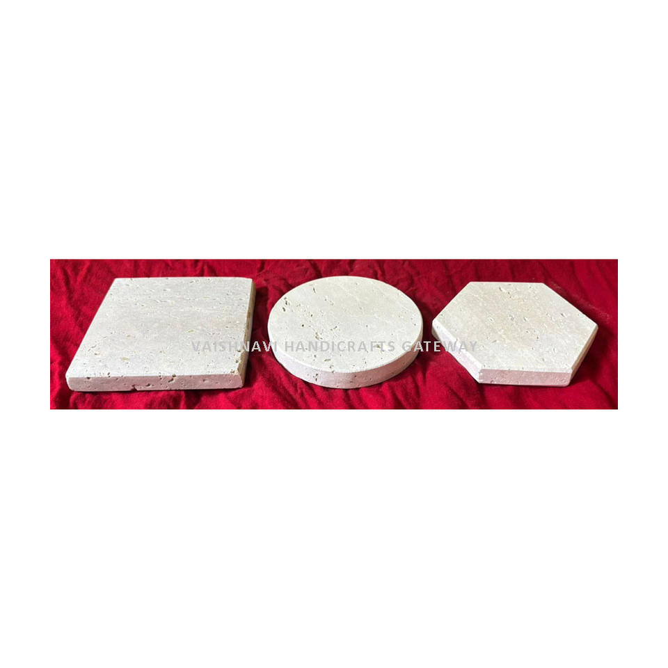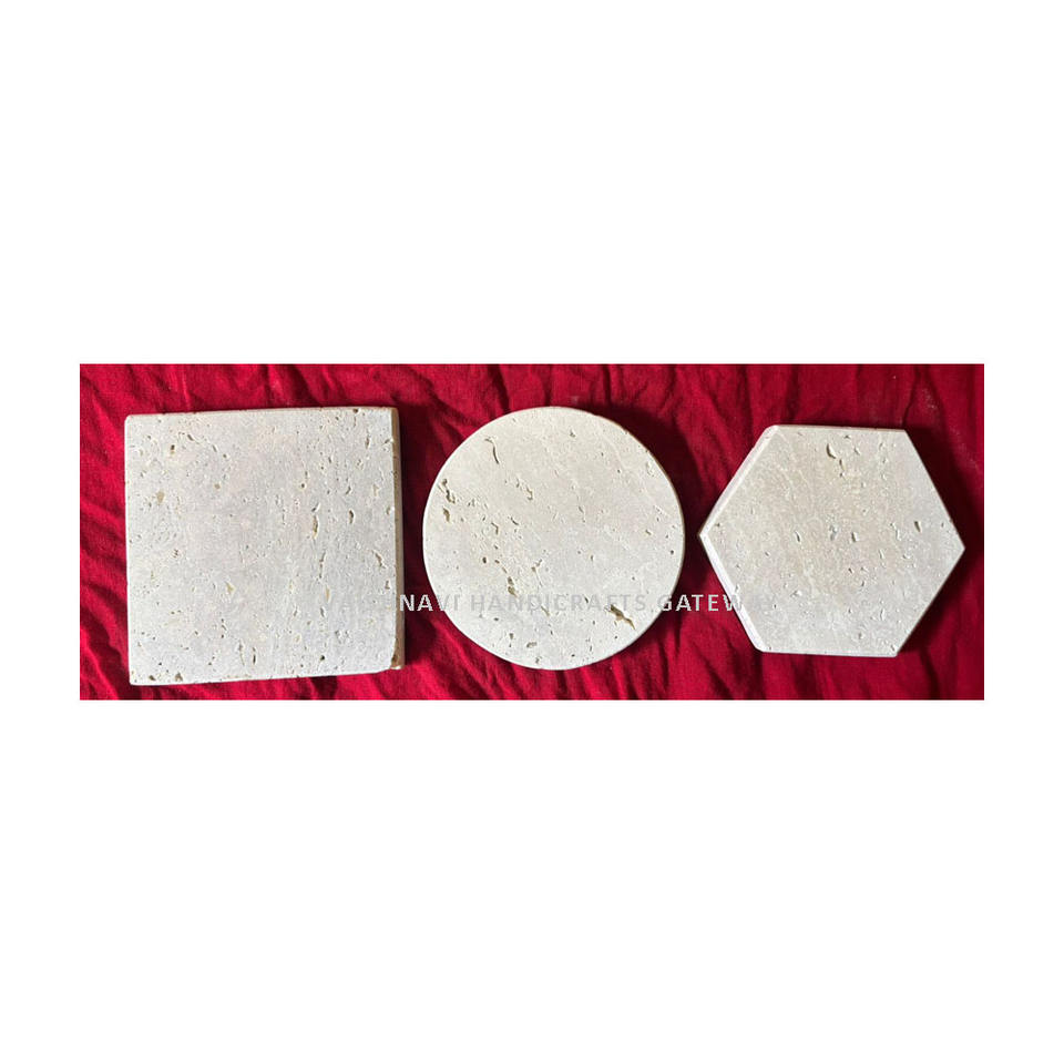 Juego de posavasos de té de piedra natural de travertino 3 diseños de estilo para uso doméstico y hotelero