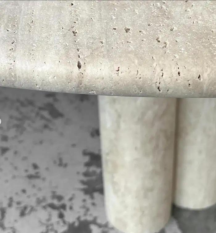 Mesa de Comedor Redonda de Piedra Travertino con Base de Doble Columna, Diseño Moderno y Lujoso que Ofrece Resistencia, Estilo y Elegancia Natural
