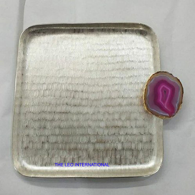 Bandeja para Servir Alimentos y Frutas de Diseño Popular y Alta Calidad para el Hogar, Cocina y Fiestas, Creativa, de Aluminio, Forma Cuadrada