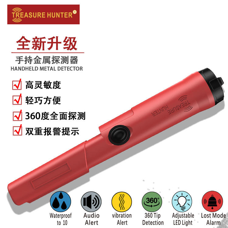 Treasure Hunter Handheld Metal Detector High Sensitivity Red Adult Use Industrial Detection