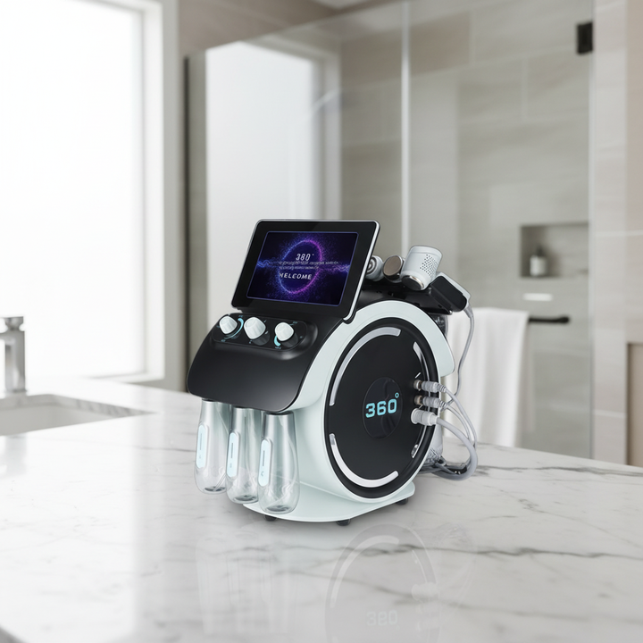 manijas:6 manijas: hidrodermoabrasión de hidrógeno, pulverizador de oxígeno, depurador de piel