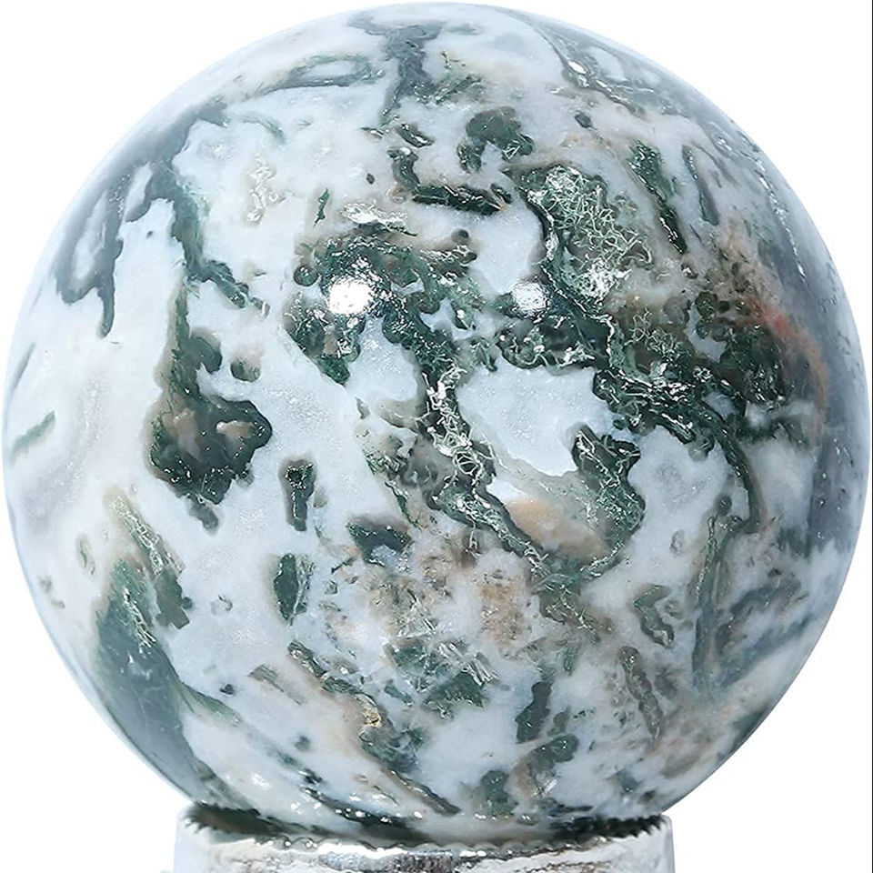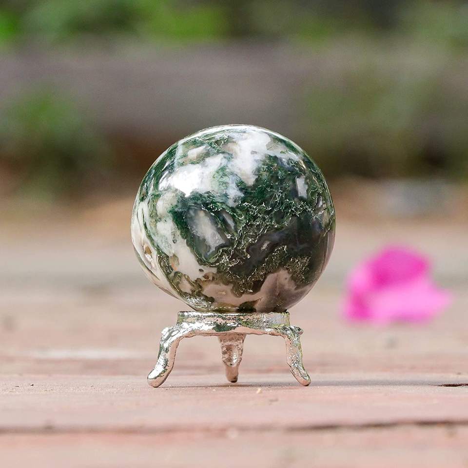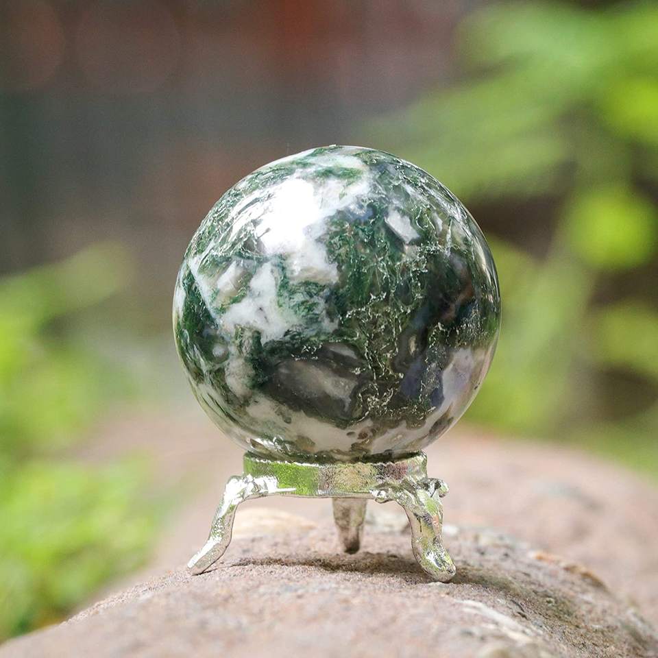 Esfera de cristal de ágata de árbol con soporte de Metal, esferas curativas, escultura de bola, figurita para adivinación Fengshui, decoración del hogar