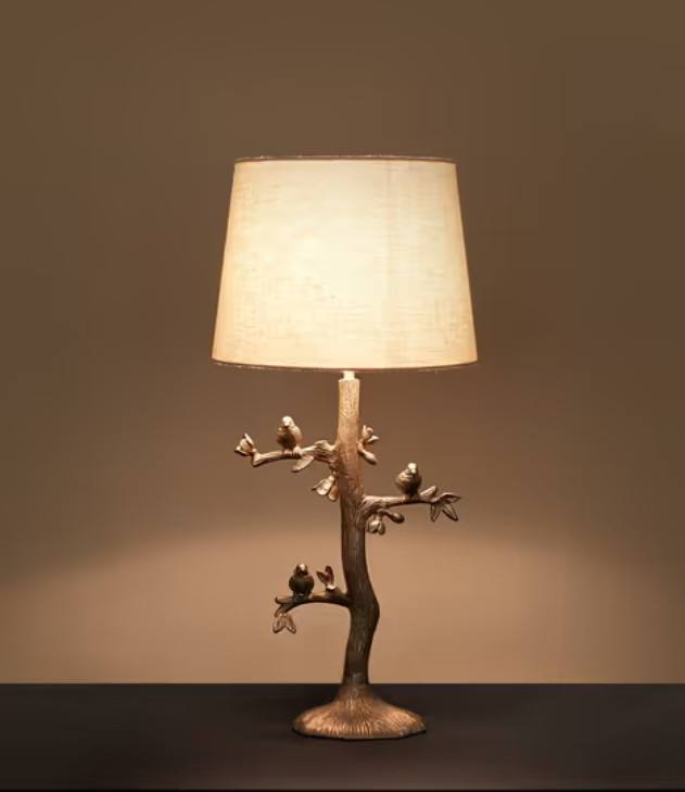 Lámpara de Mesa Estilo Rústico con Diseño de Rama de Árbol y Pájaro, Pantalla de Tela | Lámpara Decorativa Simple para Uso en Hoteles | Bombilla E26/E27/B22 para Iluminación del Hogar