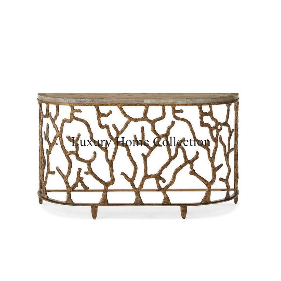 Diseño de rama de árbol Lujosa mesa de pared lateral de metal y mesa de consola Color dorado Muebles de sala de estar y dibujo de gran tamaño