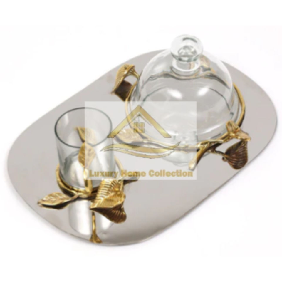Soporte en forma de rama de árbol y tazón de vidrio forma redonda totalmente transparente del fabricante y proveedor indio tazón para servir alimentos