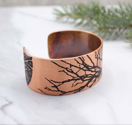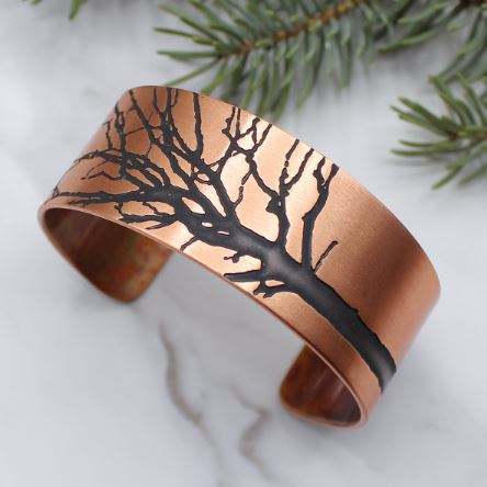 Brazalete de cobre hecho a mano Diseño de árbol por ARTISAN CRAFT Painted Technique