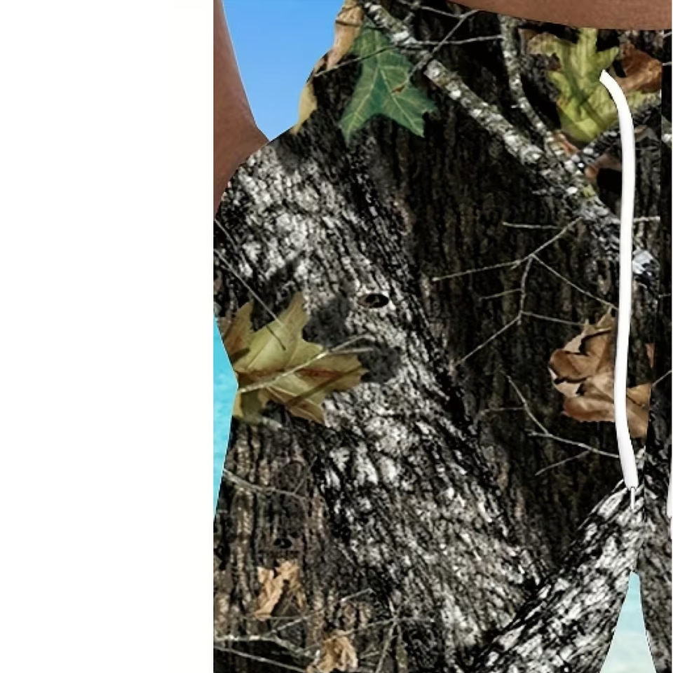 Pantalones Cortos Casuales de Poliéster con Camuflaje de Hojas de Árbol, de Secado Rápido, Cortavientos, con Cintura Acanalada en Contraste, Holgados, con Cordón Ajustable, Transpirables, para Verano y Estilo Urbano