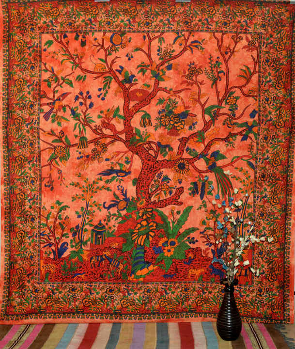 Cubrecama Decorativo de Pared con Diseño del Árbol de la Vida, Tamaño Queen, Hermoso, de Algodón, Multicolor, por Indian Consigners