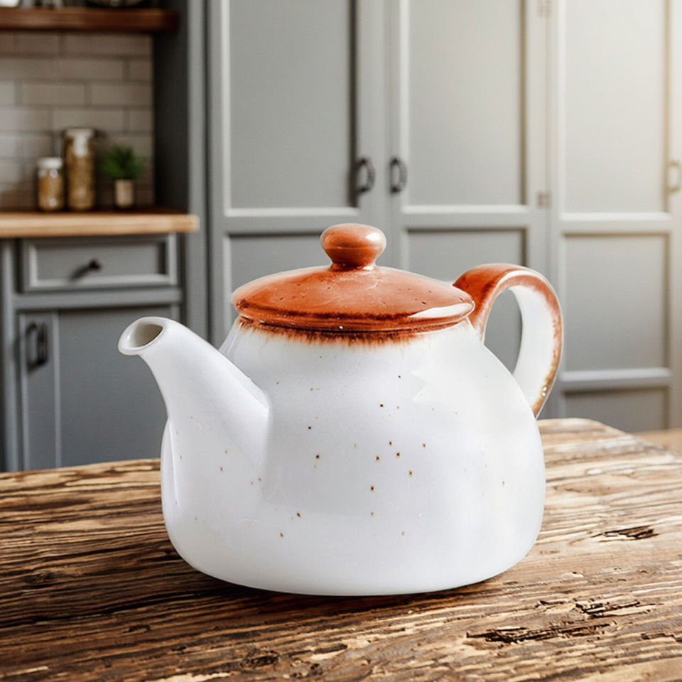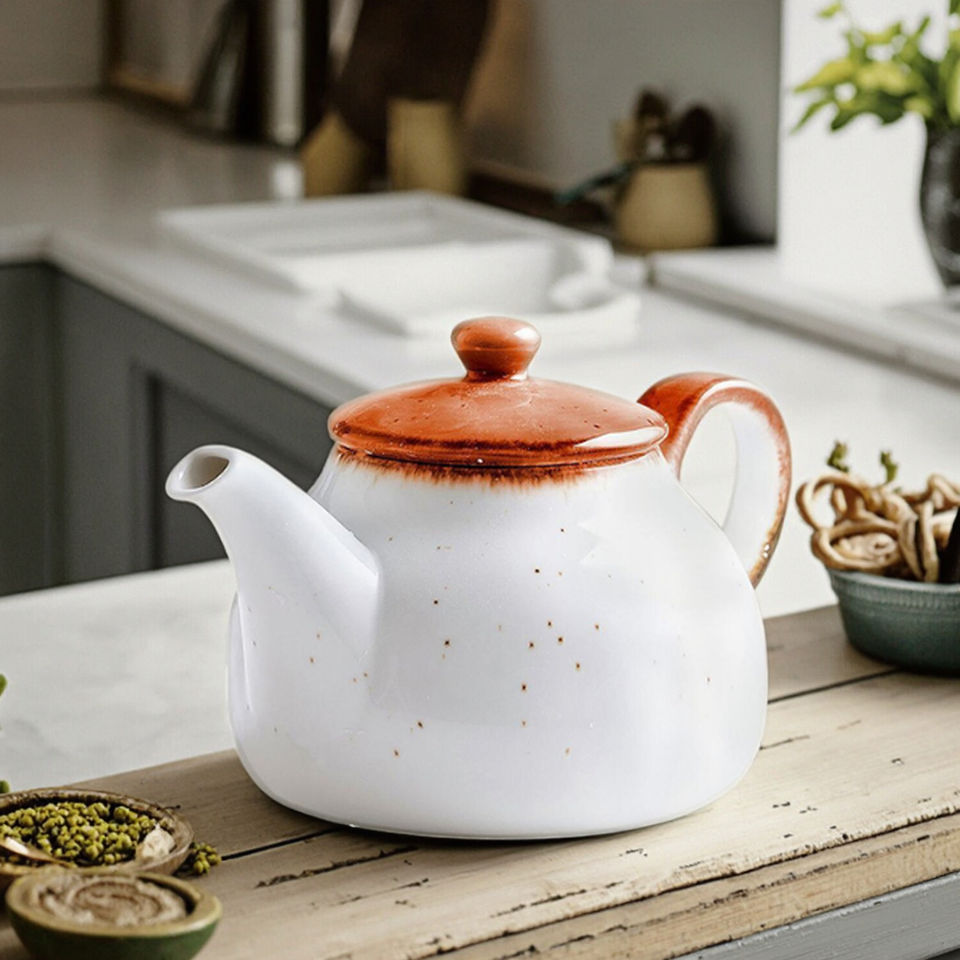Tetera Tree Rings de 660 ml, color naranja oscuro, de porcelana reforzada, con asa.