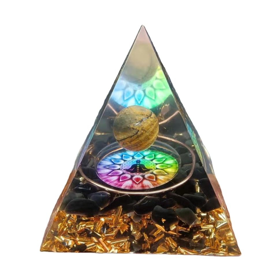 Pirámide de orgón de árbol de la vida, Ojo de Tigre, obsidiana, Reiki, meditación, pirámide de orgonita de AL AQSA, cristal y gemas