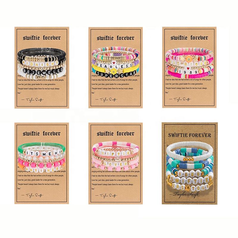 Pulsera de Amistad Personalizada de Moda para Fans de Taylor Swift, Swiftie 1989 Reputation, Pulsera de Cuentas Heishi Boho de Arcilla Polimérica