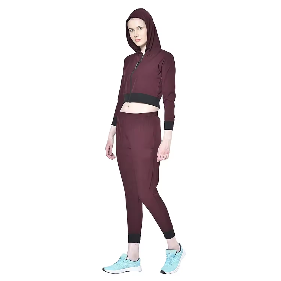 Conjunto de chándal de invierno para mujer, chándal, chándal OEM para mujer, logotipo personalizado, pantalones de chándal y conjunto de Sudadera con capucha recortada