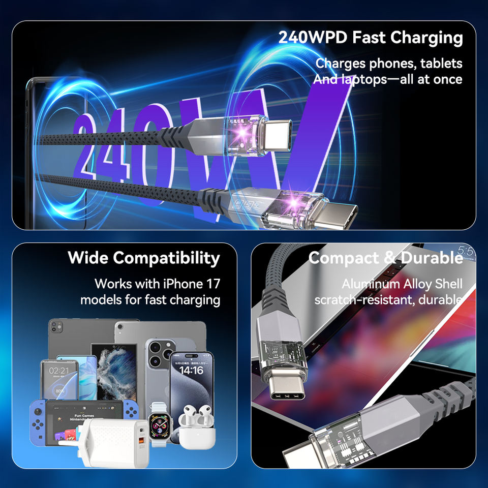 Categorías Principales de Productos:Cable de carga Tipo-C de 240W