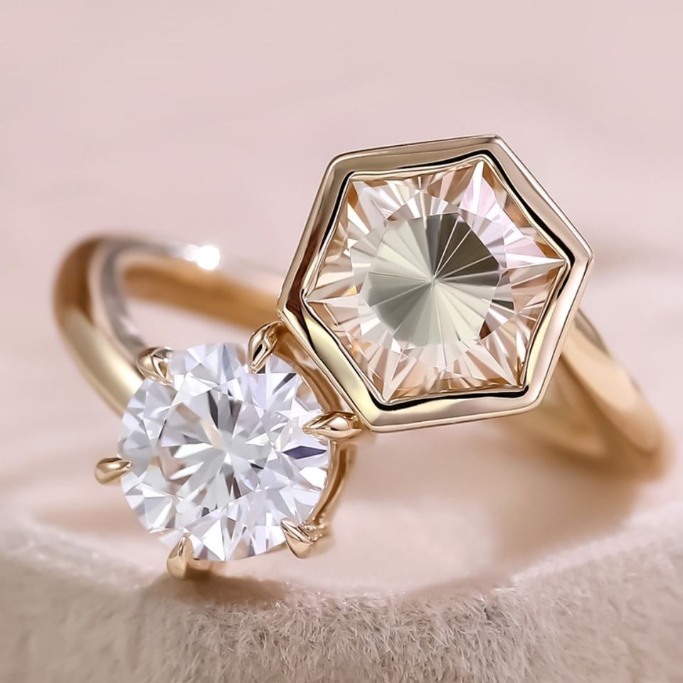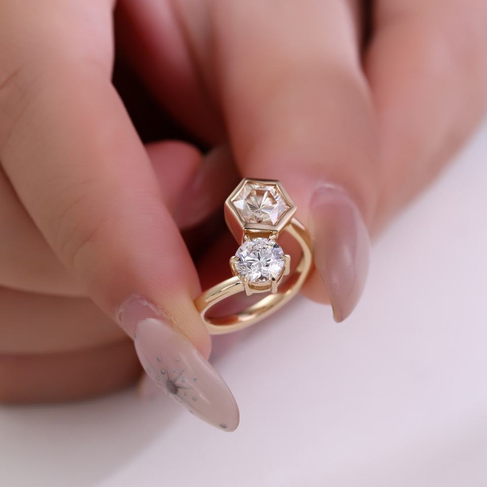 Diamante cultivado en laboratorio+oro de 14k