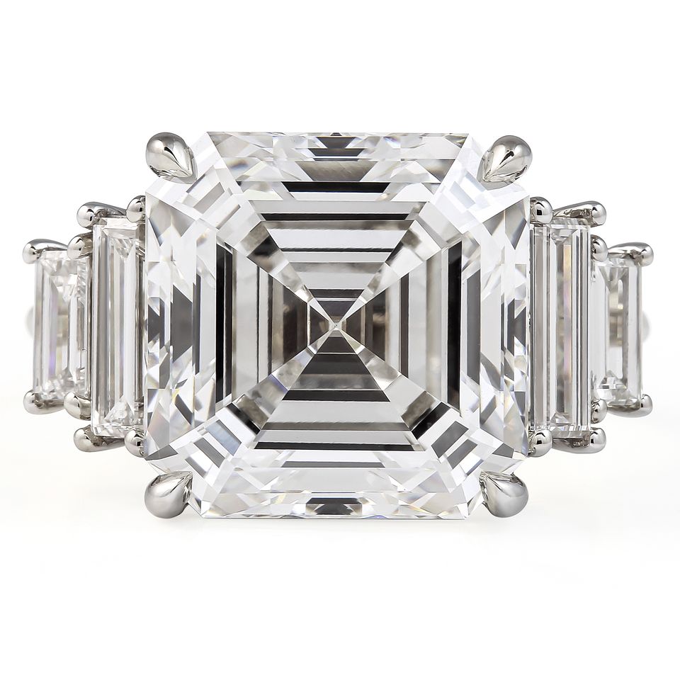 Tendencia Asscher y Baguette Corte brillante Diamante cultivado en laboratorio 14K Oro blanco Ajuste de Punta Anillo de compromiso de cinco piedras