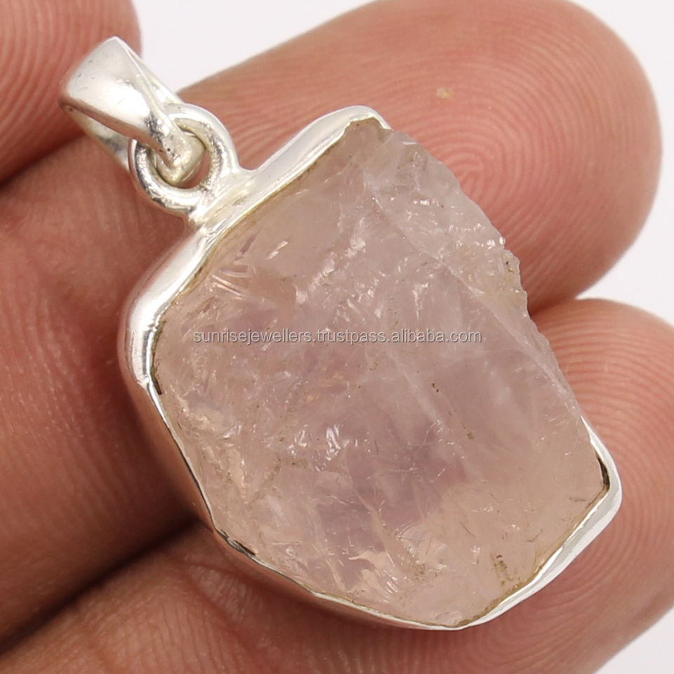 Colgante de Cuarzo Rosa Pulido en Rodio, Plata de Ley 925, con Engaste de Bisel, Lindo y Moderno! Exportador Unisex