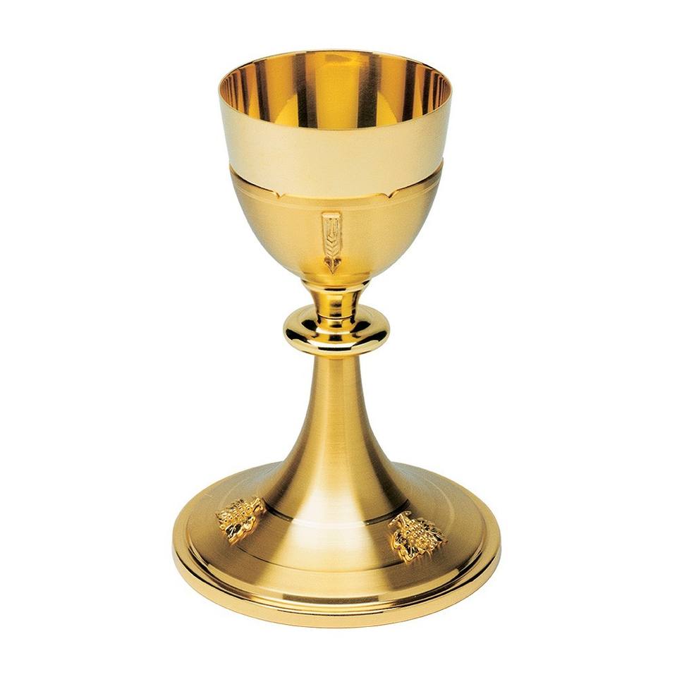 Cáliz de color dorado de moda, también personalizable con relieve. El caliz es hecho a mano con suministros religiosos de latón de alta calidad.